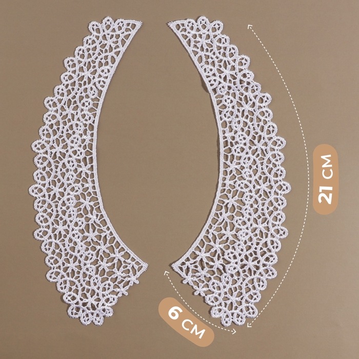 Воротник пришивной, гипюровый, 21 × 6 см, цвет белый