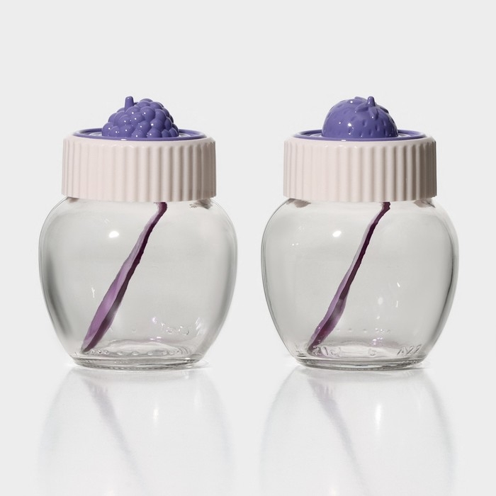 Банки стеклянные для хранения сыпучих продуктов «Блеск», 200 мл, с пластмассовой крышкой, 4 шт