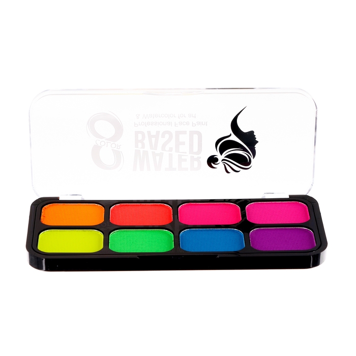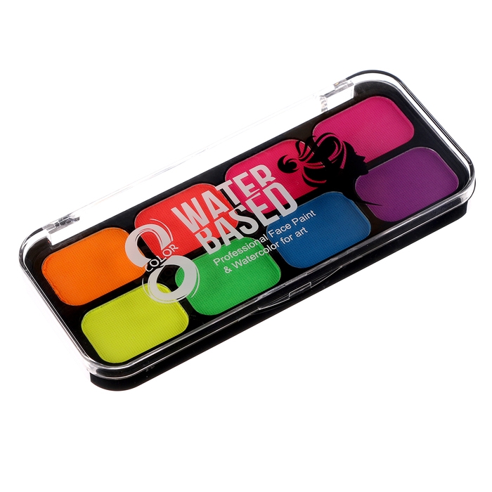 Аквагрим профессиональный для лица и тела, 8 неоновых цветов, кисточка
