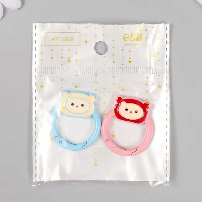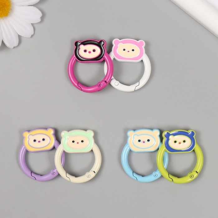 Карабин металл "Медвежонок в шапке" МИКС 3,3х3 см