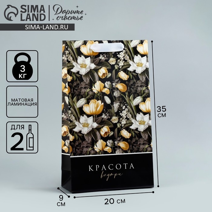 Пакет подарочный под две бутылки, упаковка, «Красота внутри», 35 х 20 х 9 см