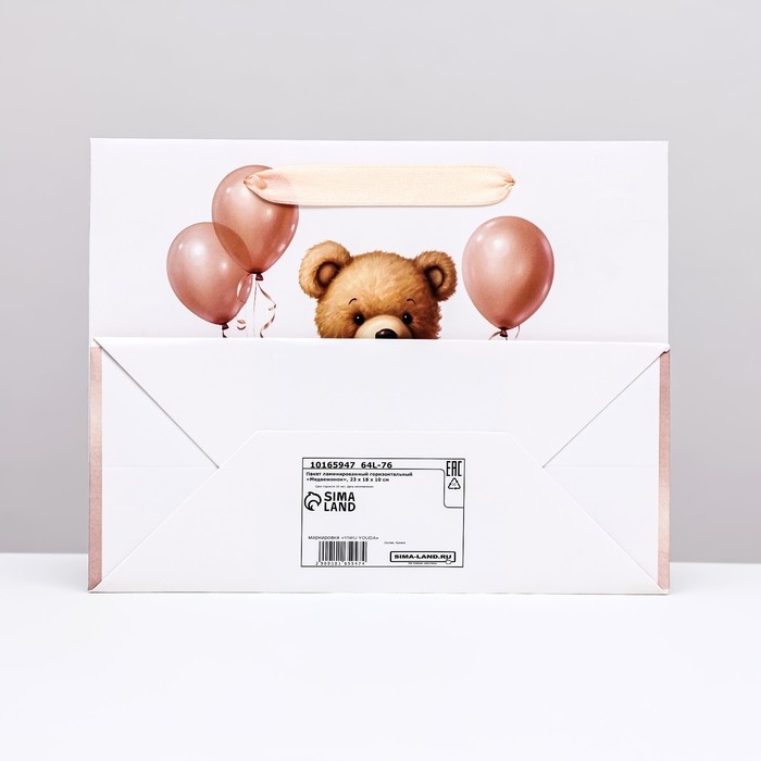 Пакет ламинированный горизонтальный "Медвежонок", 23 х 18 х 10 см