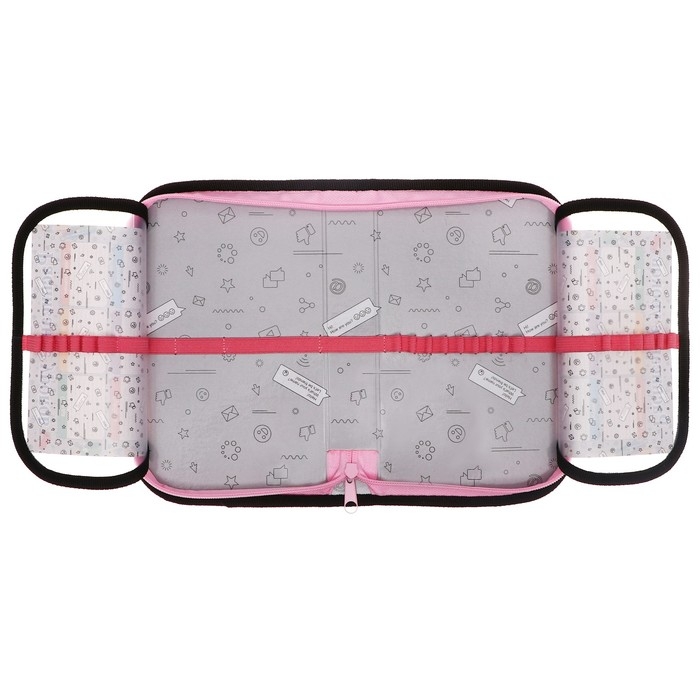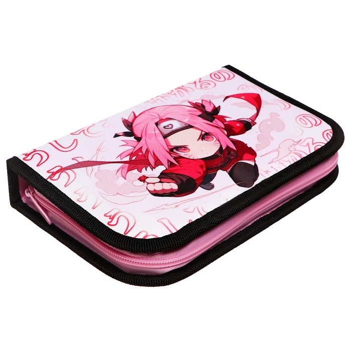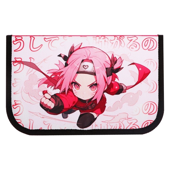 Пенал 1 секция, 130 х 210 х 40 мм, 2 откидные планки, тканевый, Calligrata TOP, Content "Аниме сакура"