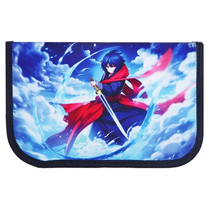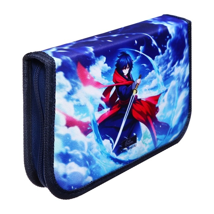 Пенал 1 секция, 130 х 210 х 40 мм, 2 откидные планки, тканевый, Calligrata TOP, Content "Аниме воин"