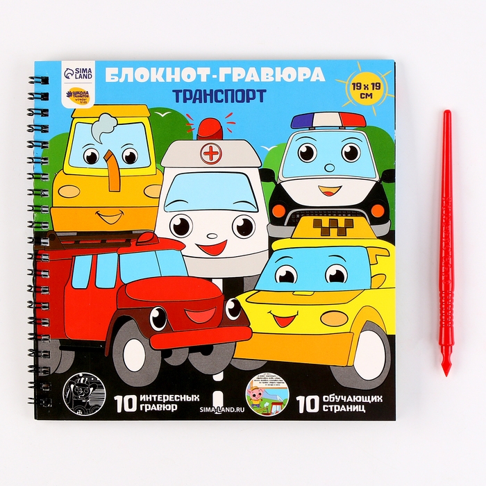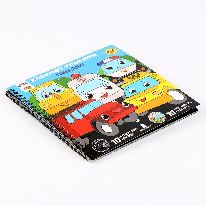 Познавательный гравюра блокнот детский «Машинки-помощники», 19 х 19 см, для мальчика