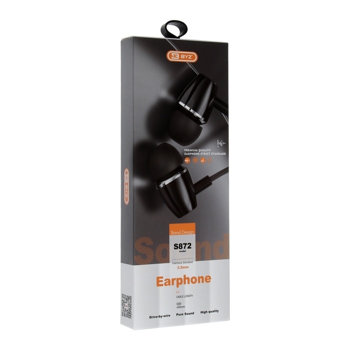 Наушники BYZ S872, проводные, вакуумные, 3.5 мм, 1.2 м, чёрные