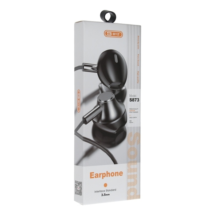Наушники BYZ S873, проводные, вкладыши, 3.5 мм, 1.2 м, чёрные