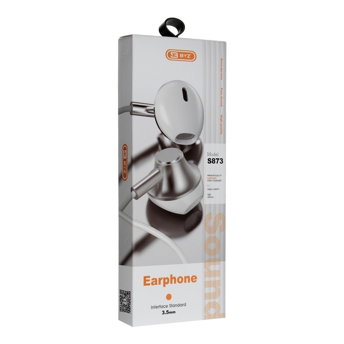 Наушники BYZ S873, проводные, вкладыши, 3.5 мм, 1.2 м, белые