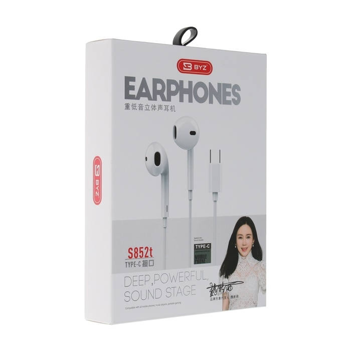 Наушники BYZ S852, проводные, вкладыши, Type-C, 1.25 м, белые