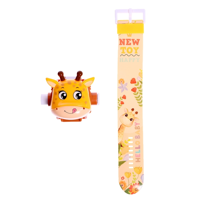 - На экране отображаются часы и минуты. Чтобы посмотреть время, нужно поднять крышку в виде жирафика.