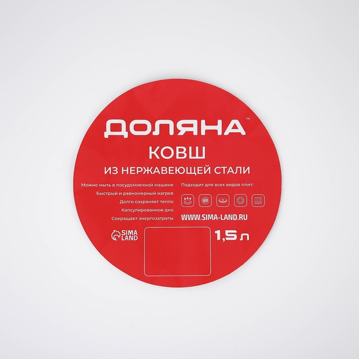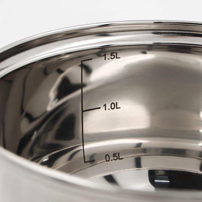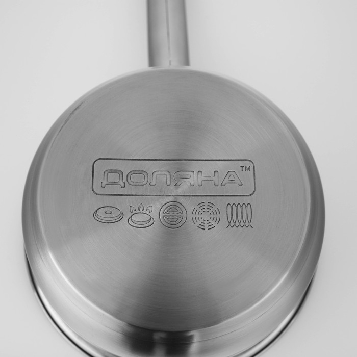 Ковш из нержавеющей стали Доляна «Гретте», 1,5 л, d=16 см, с крышкой, металлическая ручка, индукция