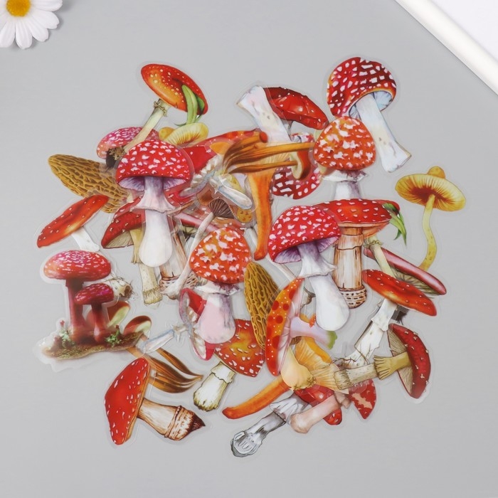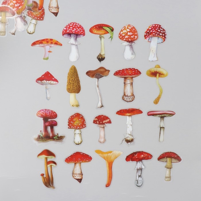 Наклейки для творчества пластик PVC "Грибные истории" набор 40 шт 9х10.5 см