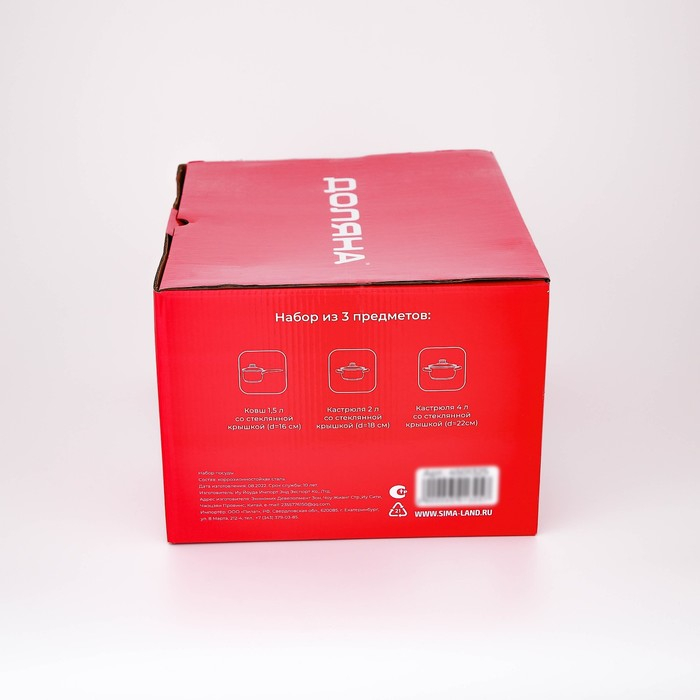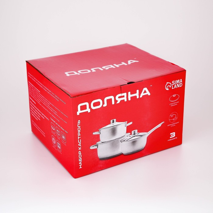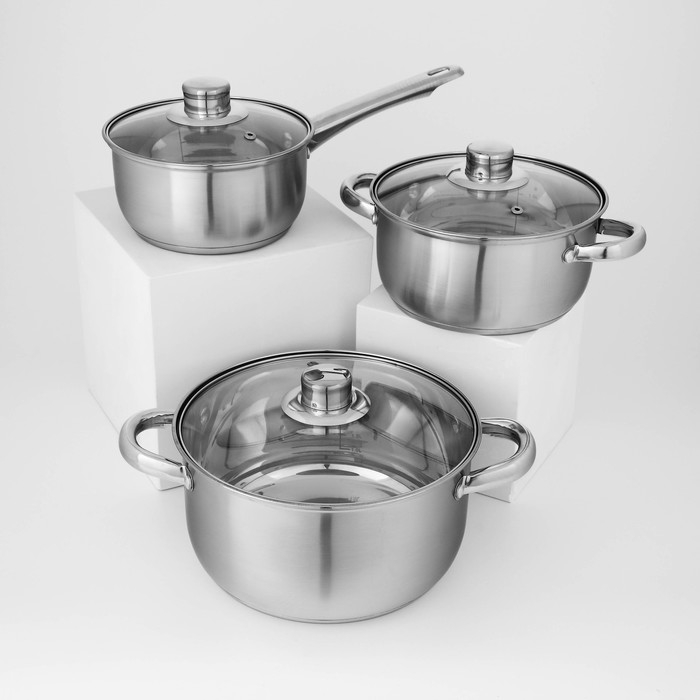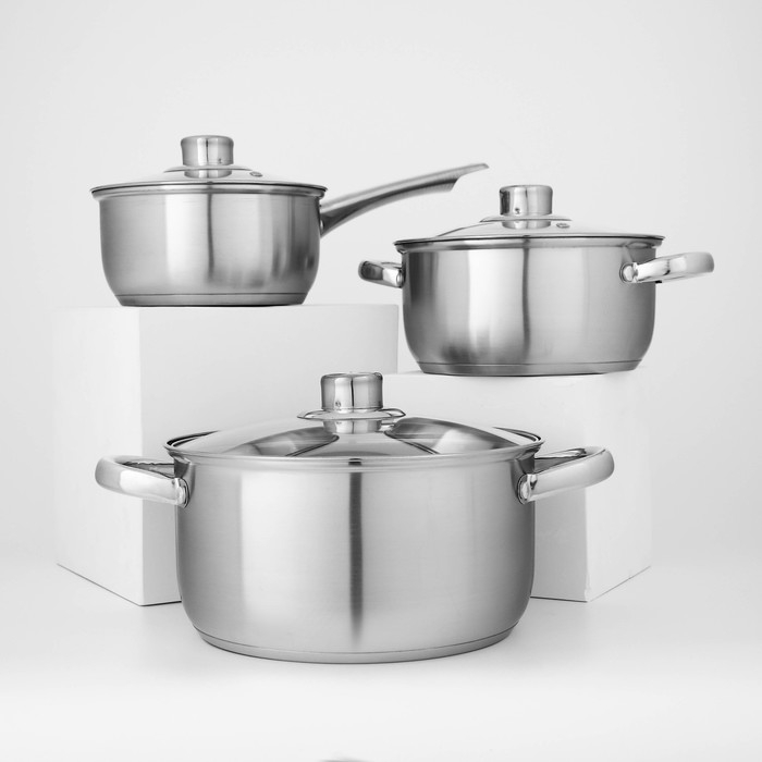 Набор посуды из нержавеющей стали Доляна «Гретте», 3 предмета: сотейник 1,5 л, d=16 см, кастрюли 2 л, 4 л, d=18 см, d=22 см, крышки