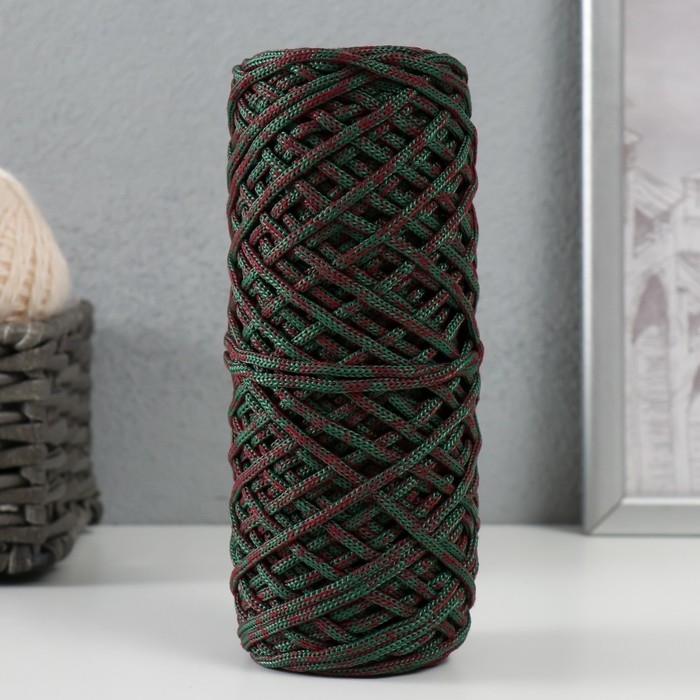 Шнур для вязания 35% хлопок,65% полипропилен 3 мм 85м/160±10 гр ( Вишня/изумруд)