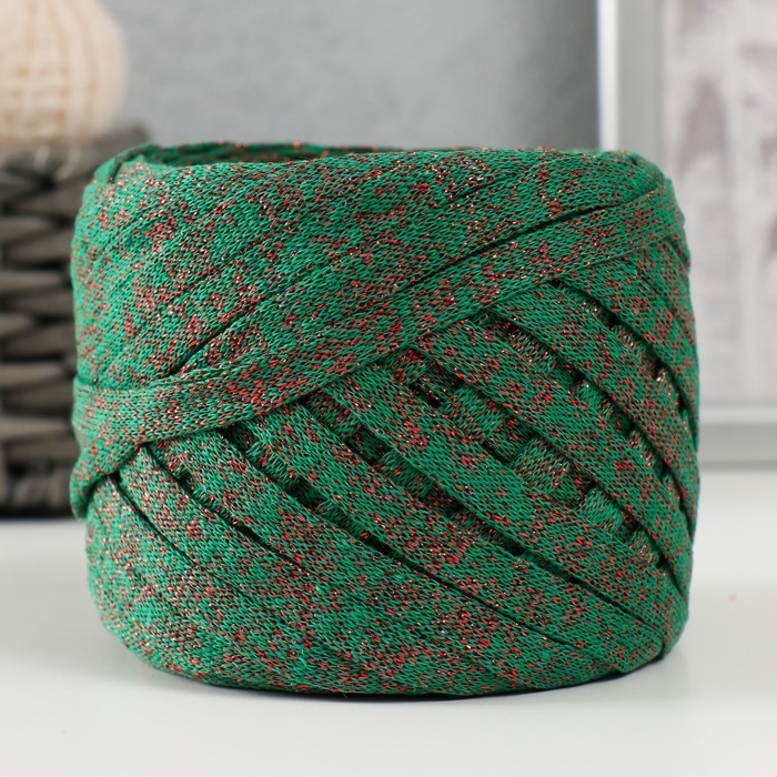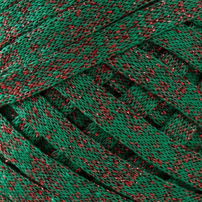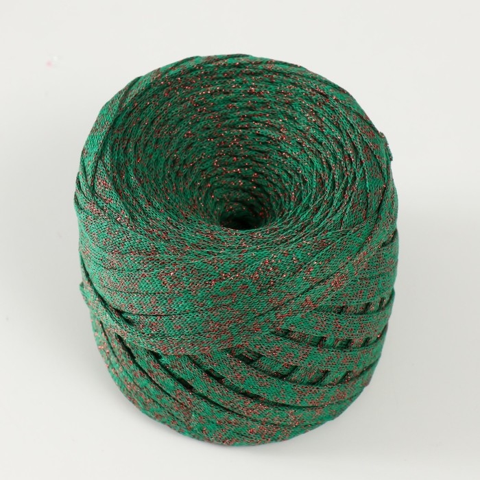 Трикотажная пряжа "Риббон" с люрексом 85м/170±5 гр (Нефрит, люрекс: Красный)