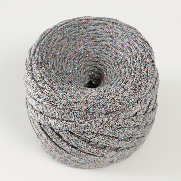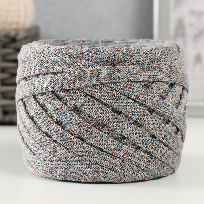 Трикотажная пряжа "Риббон" с люрексом 85м/170±5 гр (Серый, люрекс: Радуга)