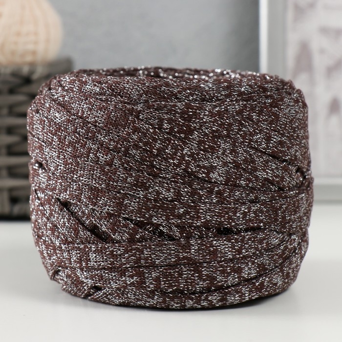 Трикотажная пряжа "Риббон" с люрексом 85м/170±5 гр (Кофе, люрекс: Серебро)