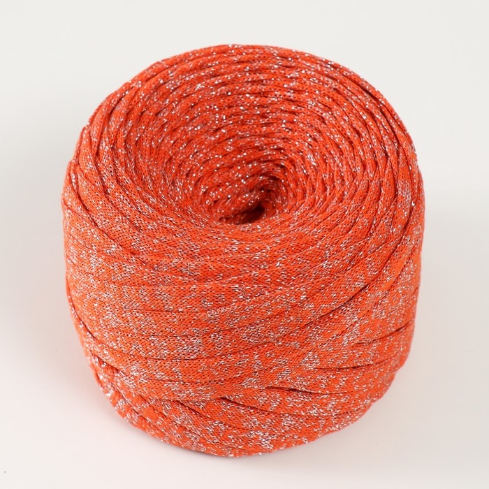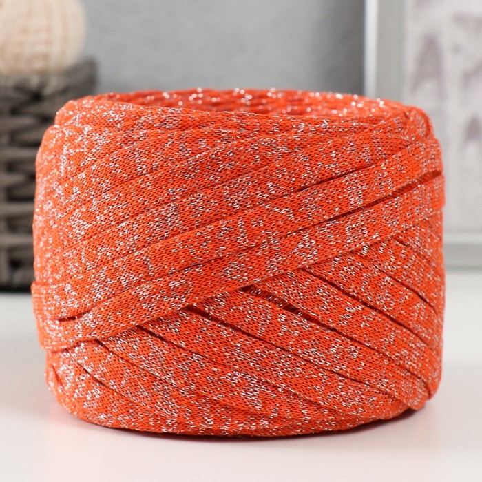 Трикотажная пряжа "Риббон" с люрексом 85м/170±5 гр (Рябина, люрекс: Серебро)