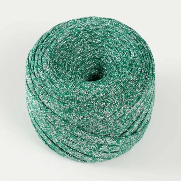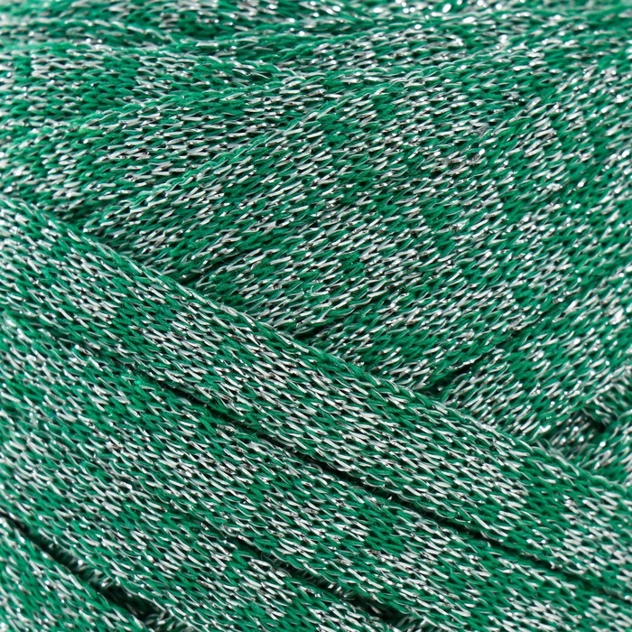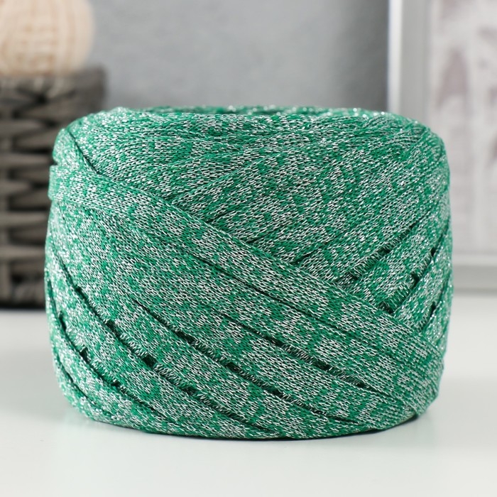 Трикотажная пряжа "Риббон" с люрексом 85м/170±5 гр (Нефрит, люрекс: Серебро)