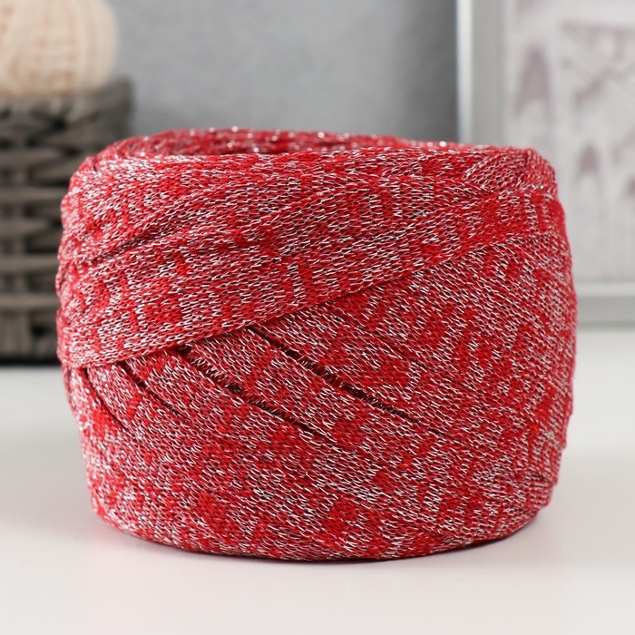 Трикотажная пряжа "Риббон" с люрексом 85м/170±5 гр ( Красный, люрекс: Серебро)