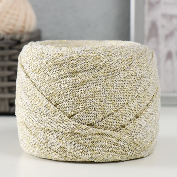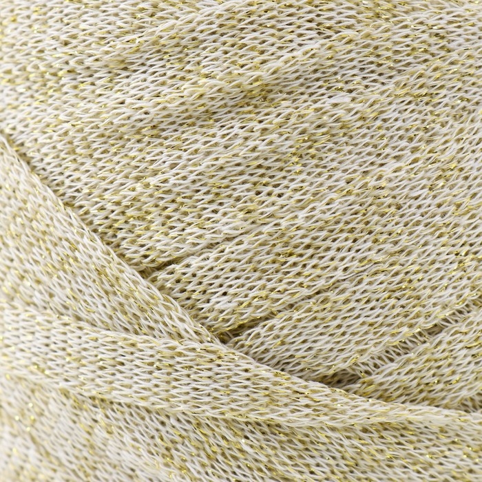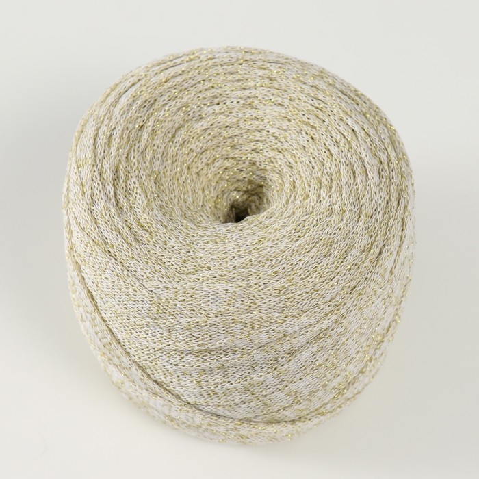 Трикотажная пряжа "Риббон" с люрексом 85м/170±5 гр (Белый, люрекс: Золото)