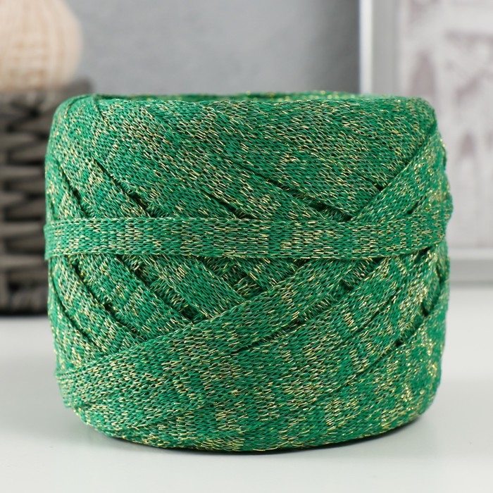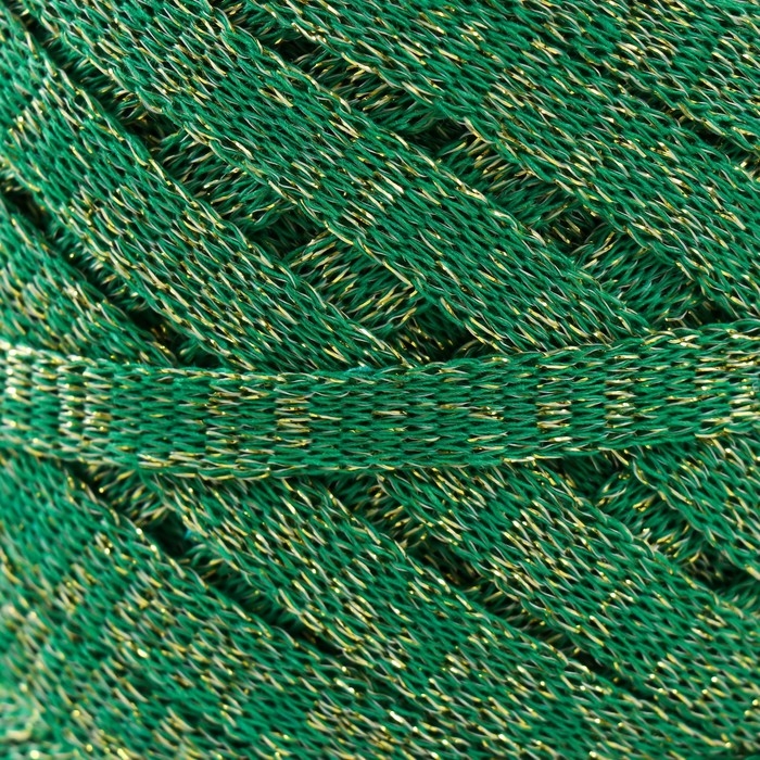 Трикотажная пряжа "Риббон" с люрексом 85м/170±5 гр (Нефрит, люрекс: Золото)