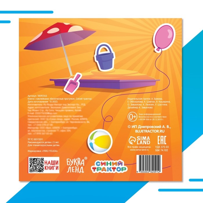 Книга с наклейками «Безопасные прогулки», Синий трактор