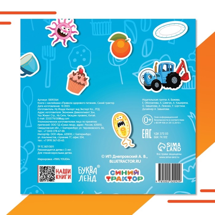 Книга с наклейками «Правила здорового питания», Синий трактор