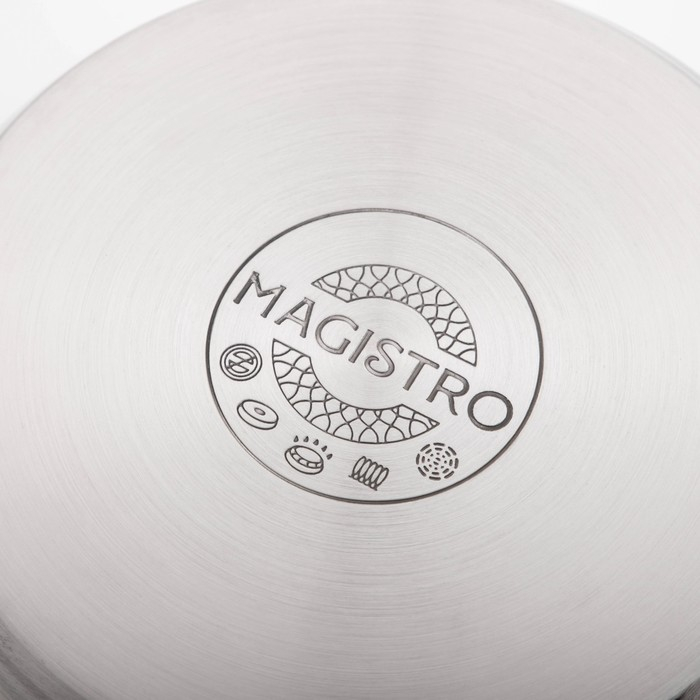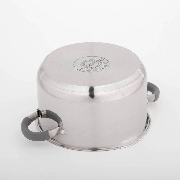 Кастрюля из нержавеющей стали Magistro Tefida, 4,6 л, крышка-дуршлаг, носик для слива, капсульное дно, силиконовые ручки, с крышкой