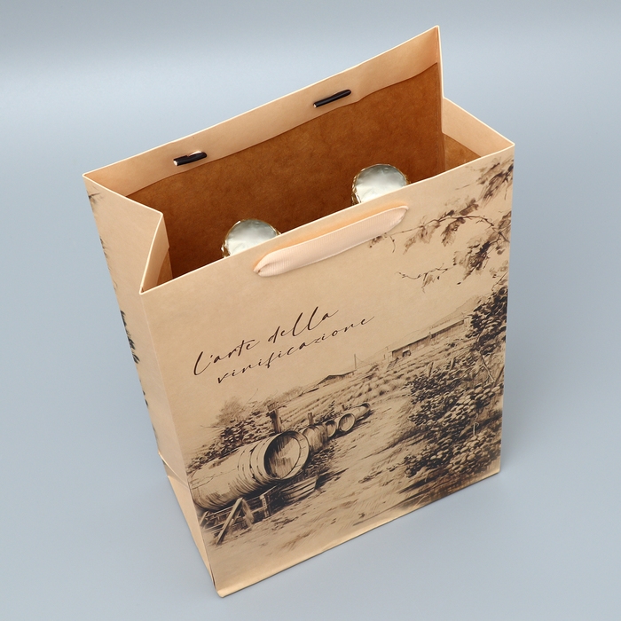 Пакет подарочный под две бутылки, упаковка, Winery, 35 х 20 х 9 см