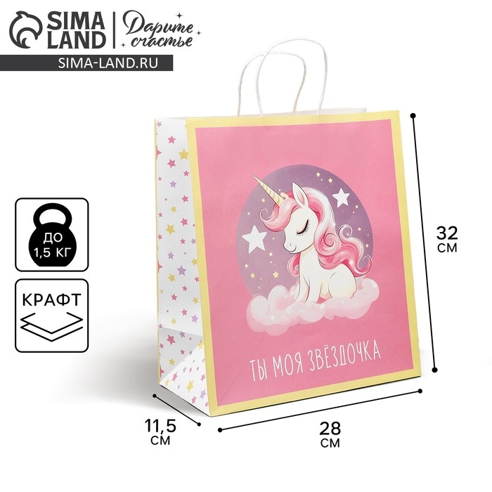 Пакет подарочный крафт, упаковка, «Моя звёздочка», 32 х 28 х 15 см