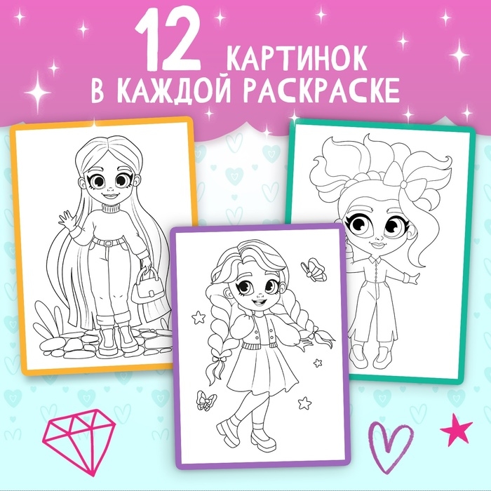 Набор раскрасок «Для девочек», 4 шт. по 16 стр., формат А4