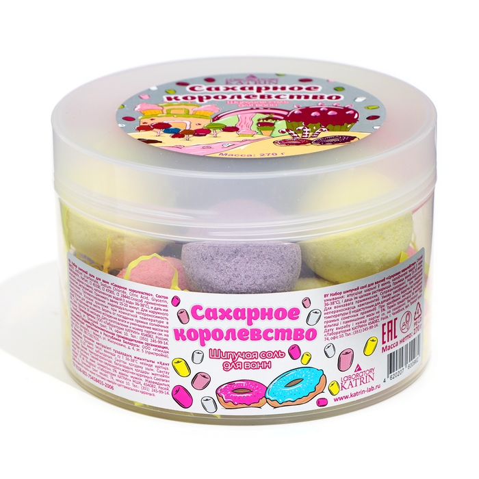 Набор бомбочек для ванн "Laboratory Katrin сахарное королевство", 270 г - приглашает вас на захватывающее водное приключение, наполненное сладкими ароматами и бережным уходом за вашей кожей. Каждая бомбочка этого набора создана для того, чтобы превратить ваш ванный опыт в настоящее сказочное приключение.