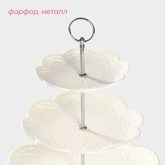 Этажёрка - фруктовница Доляна «Сьюзен», 3 яруса, d=15,5/25,5/27 см, фарфор, цвет белый