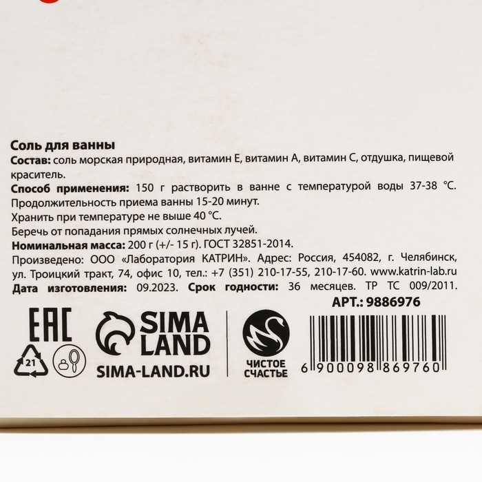 Cоль для ванны I Love you!, 200 г, аромат ягод, ЧИСТОЕ СЧАСТЬЕ