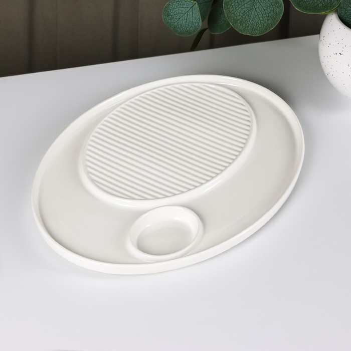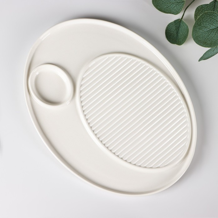 Блюдо фарфоровое с соусником Доляна, 30×22,5 см, цвет белый