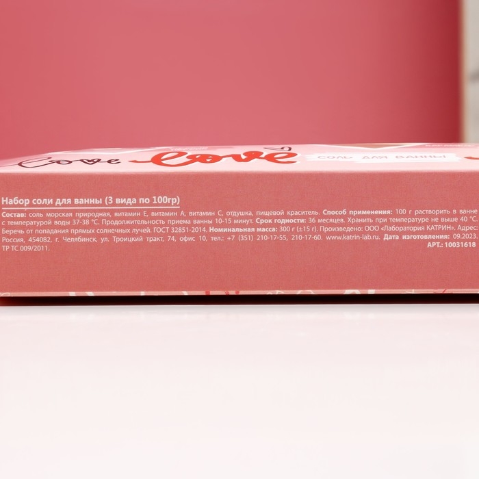 Подарочный набор косметики Love, соль для ванны 3 х 100 г, ЧИСТОЕ СЧАСТЬЕ