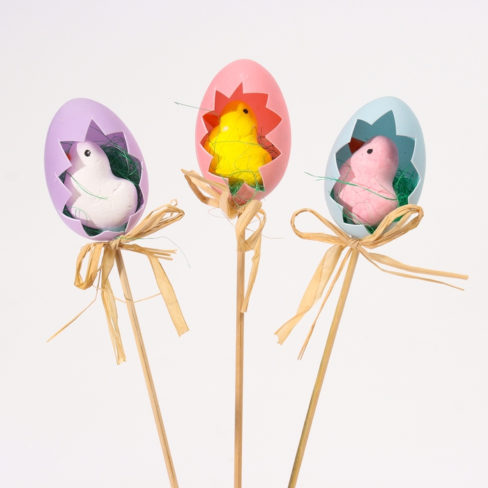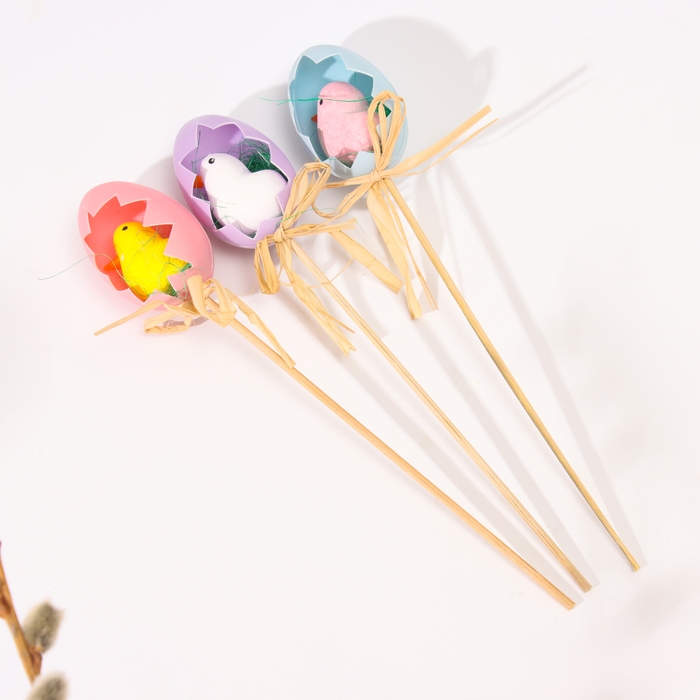 Декор на палочке «Цыплята в яице», пасхальный, 3 шт., 4 × 12,5 × 25 см