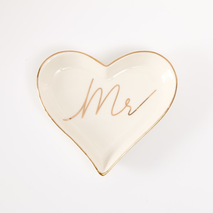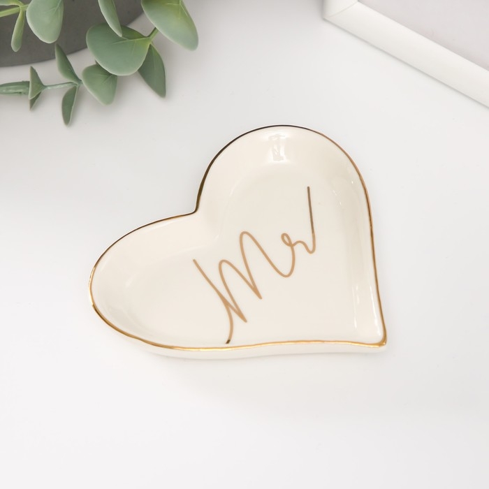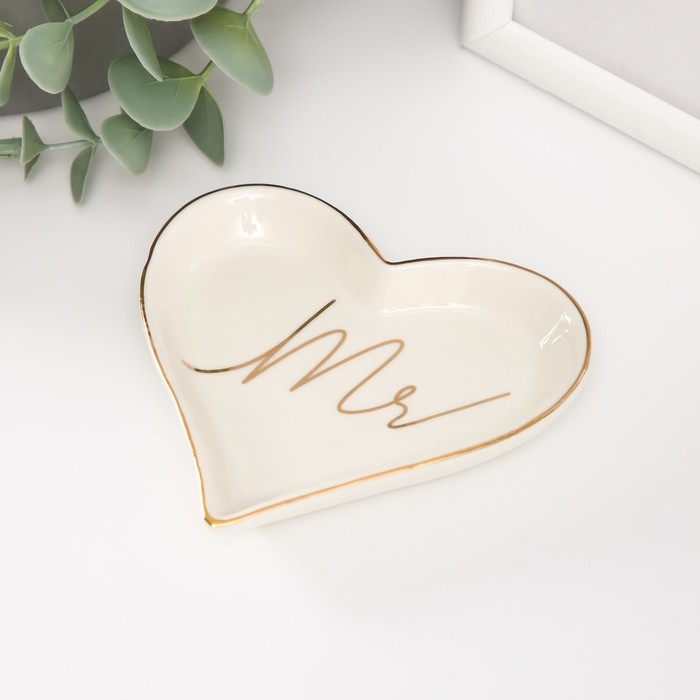 Сувенир керамика подставка под кольца "Мистер" сердце 10х9х1,6 см