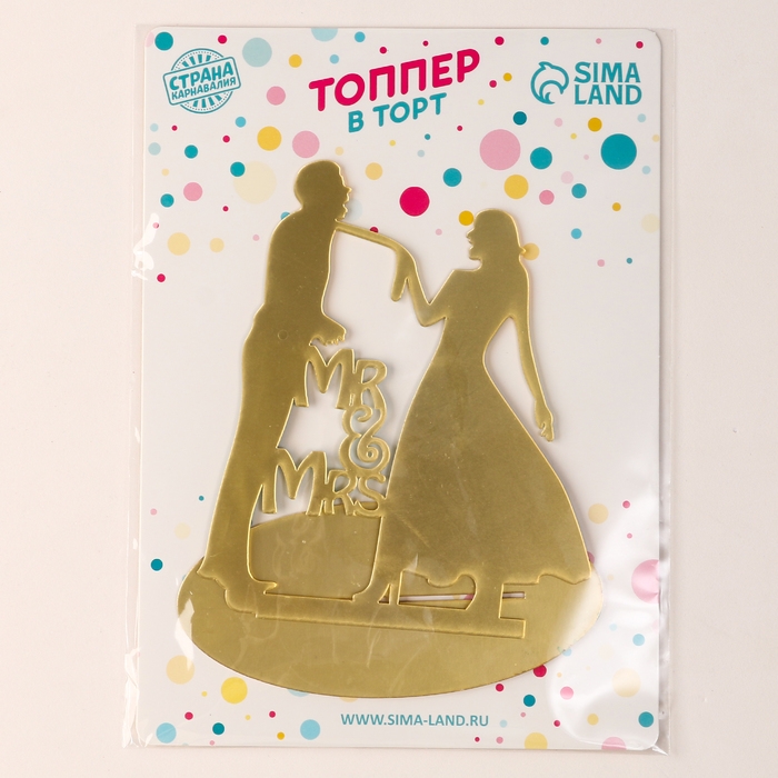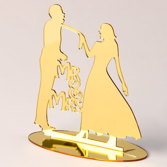 Топпер для торта «Молодожёны», 15×9,5 см, цвет золотой