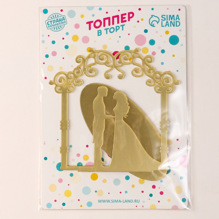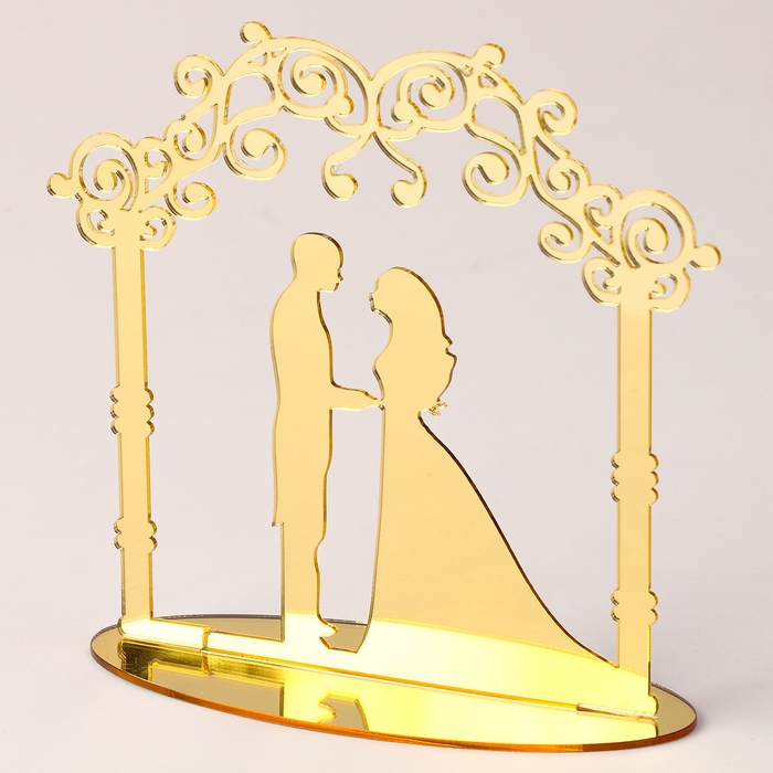 Топпер для торта «Молодожёны», 15×9,5 см, цвет золотой