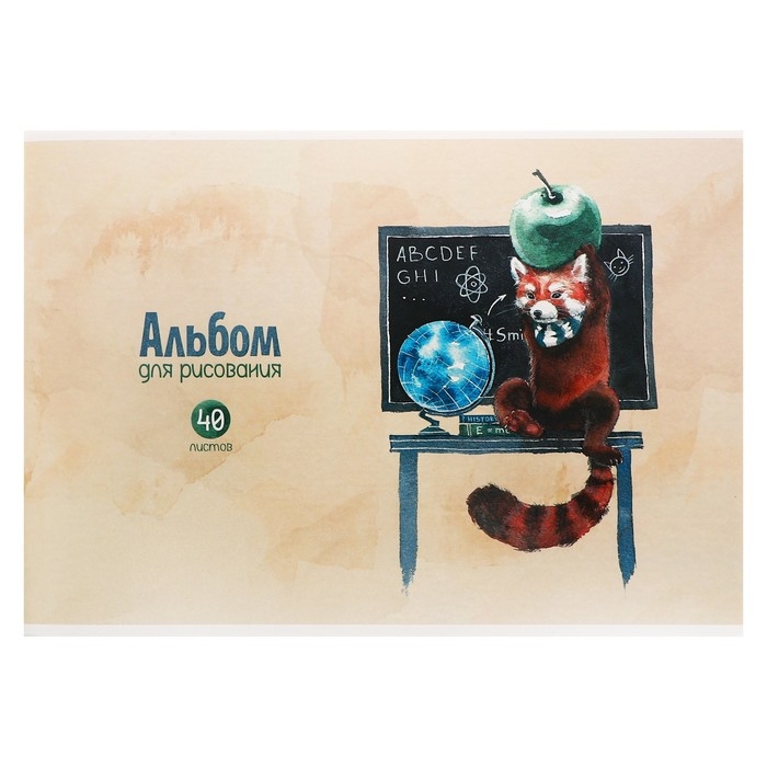 Альбом для рисования А4, 40 листов, на скрепке, "ГЛОБУС и ПАНДА", обложка мелованный картон, выборочный твин-лак, УФ-лак, блок 100 г/м²