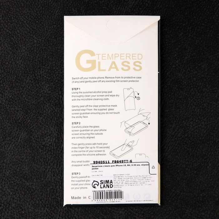 Защитное стекло для iPhone 15/16, 9H, 0.33 мм, чёрная рамка