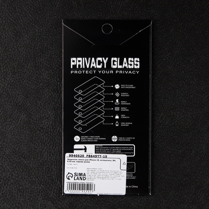 Защитное стекло для iPhone 15/16, антишпион, 9H, 0.33 мм, чёрная рамка