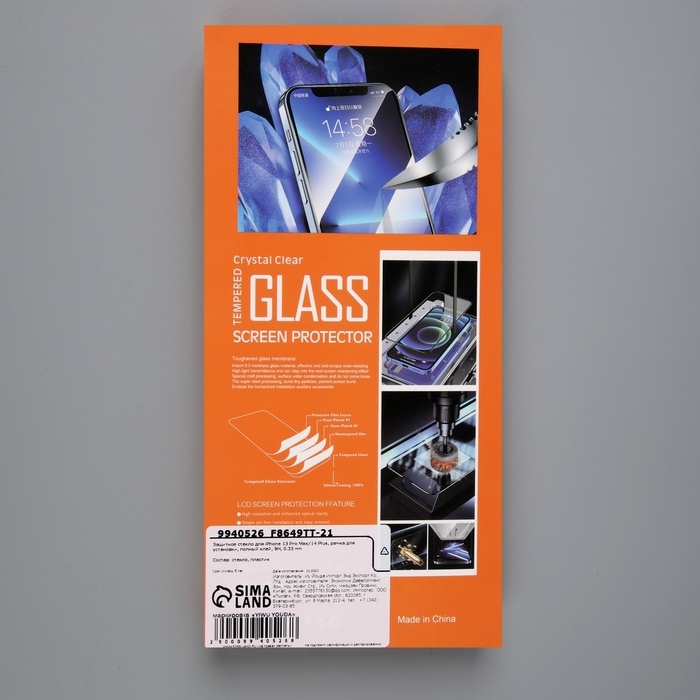 Защитное стекло для iPhone 13 Pro Max/14 Plus, рамка для установки, полный клей, 9H, 0.33 мм