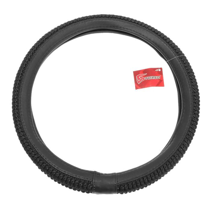 Оплетка на руль TORSO, кожа PU, тканевая вставка с узором, размер 38 см, черный