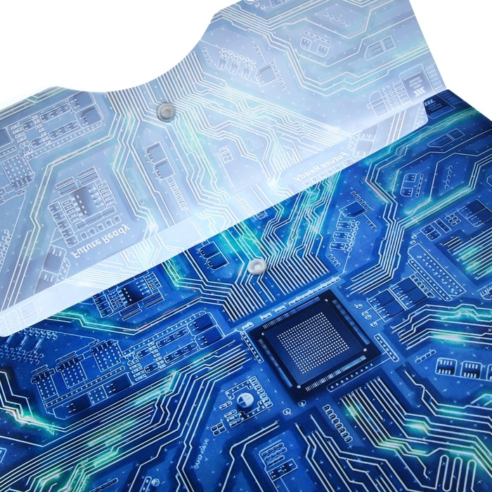 Папка-конверт "Чип" на кнопке А4, 350 мкр, синяя