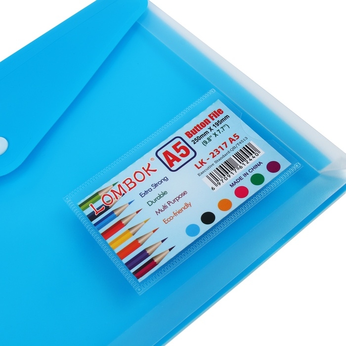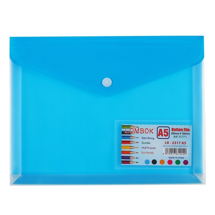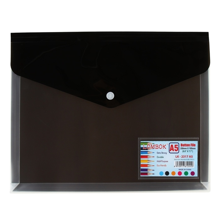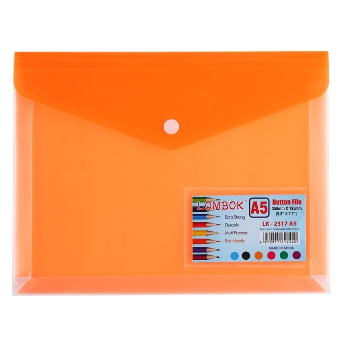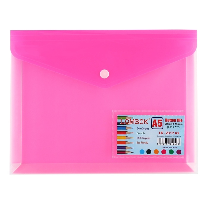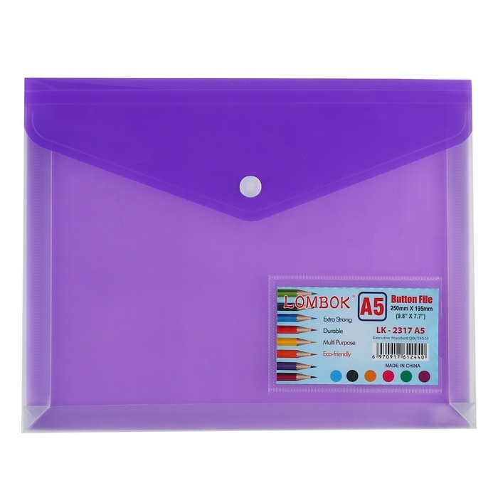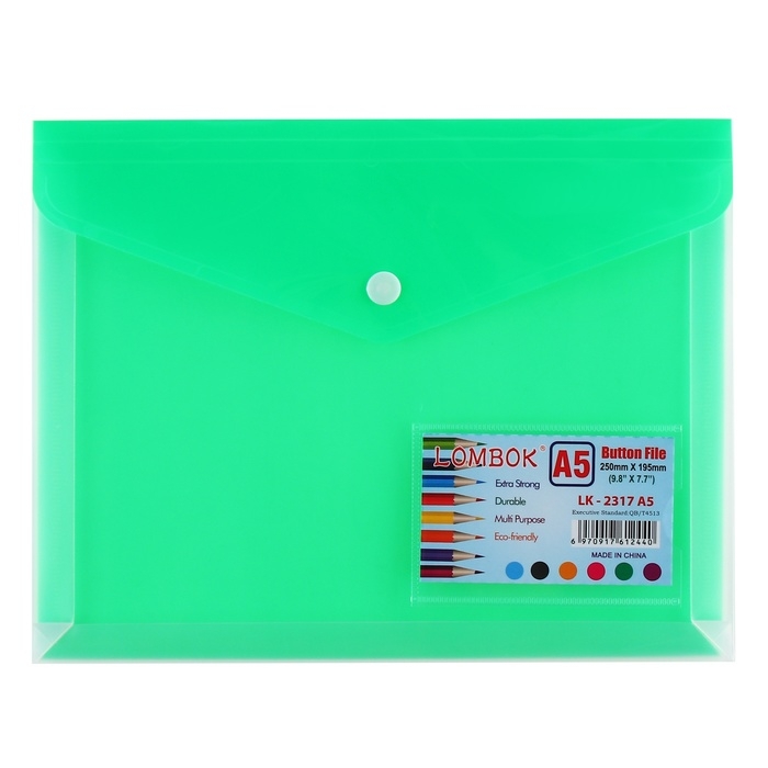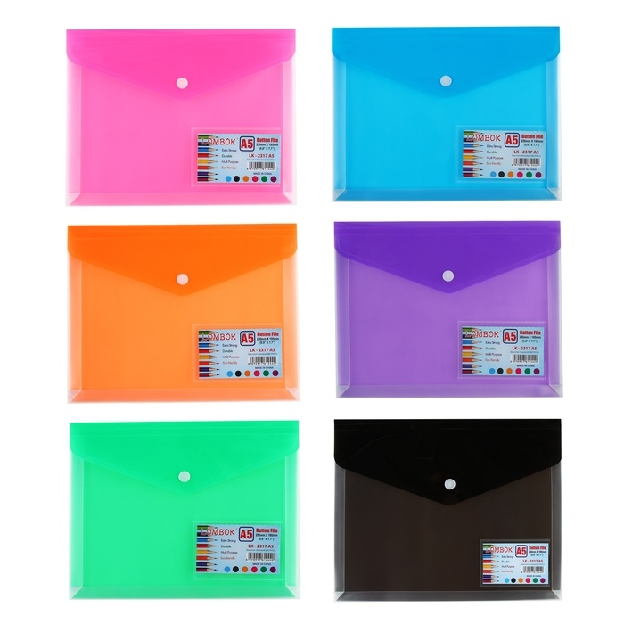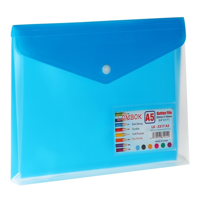 Папка-конверт на кнопке А5, 180 мкр, с расширением, карман для визиток, МИКС