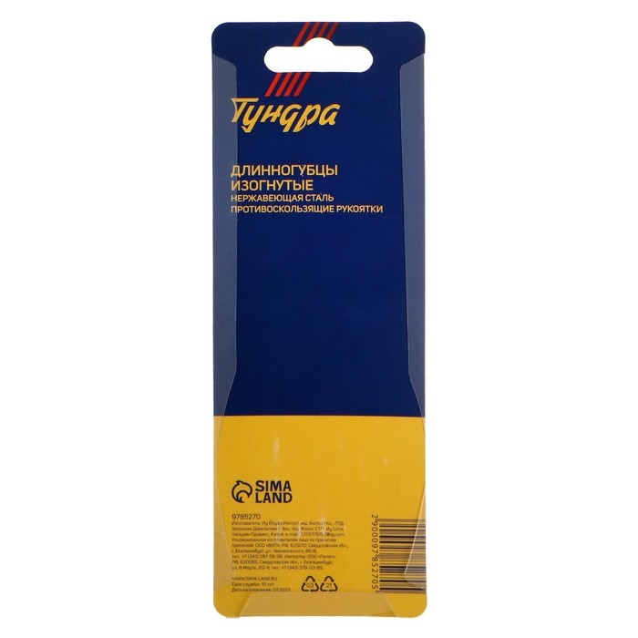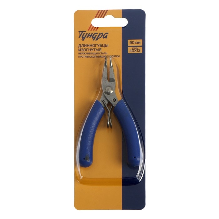 Длинногубцы изогнутые для электроники ТУНДРА mini, нерж. сталь, противоск. рукоятки, 90 мм