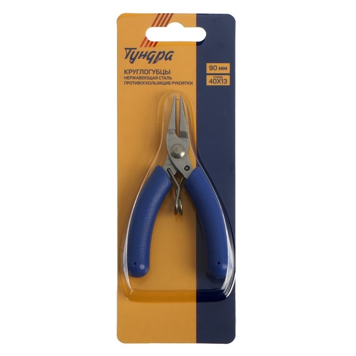 Круглогубцы для электроники ТУНДРА mini, нерж. сталь, противоскользящие рукоятки, 90 мм